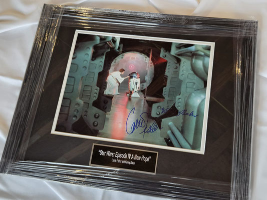Star Wars 11x14 photo autographed by Carrie Fisher and Kenny Baker