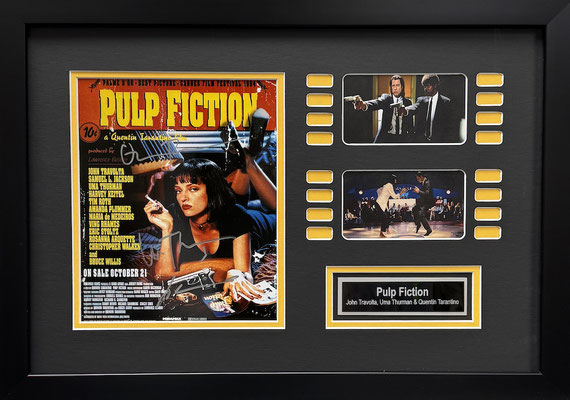 Pulp Fiction 8x10 movie poster display autographed by Quentin Tarantino, John Travolta and Uma Thurman