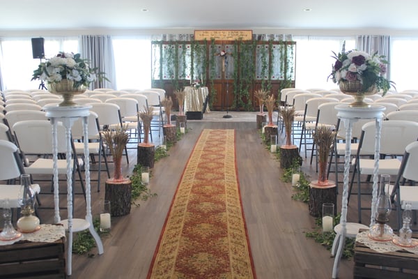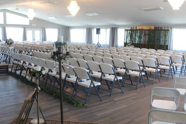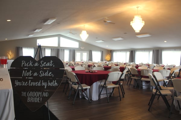 The modern, elegant backdrop of the Ballroom is suitable for personalizing with your own decor, floral arrangements, and colors. Able to accommodate up to 300 guests, the Ballroom has an attached ready room in which the bridal party can prepare, or a game room if keeping guests entertained is a priority.Tables, chairs, linen tablecloths, and use of the commercial kitchen is all included with no additional cost.