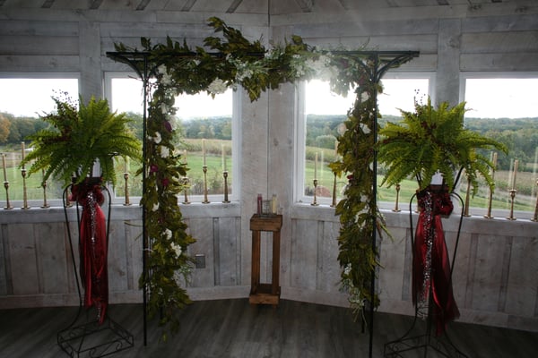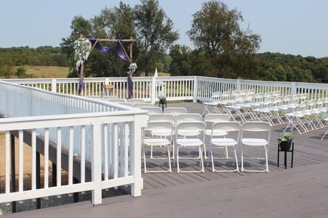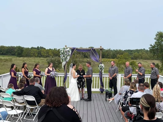 Plan your outdoor wedding overlooking the ten acres of natural surroundings from the top of the spacious deck, or from within the adjoining Lodge.